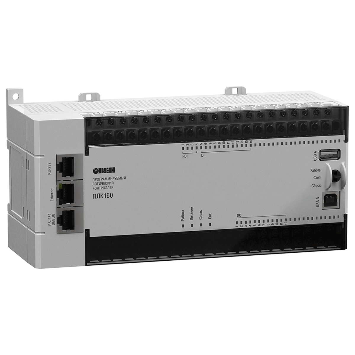 ОВЕН ПЛК160 [М02] – линейка программируемых моноблочных контроллеров с дискретными и аналоговыми входами/выходами на борту для автоматизации средних систем.
